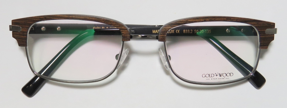 GOLD & WOOD B33.2-B Eyeglasses in color BROWNGUNMETALSHINYBLACKSale